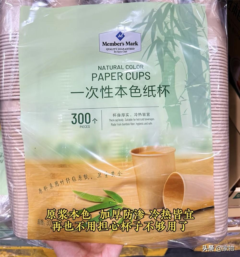 拿山姆這包紙杯來說,後面的用料表十分簡潔,就原生竹纖維材質,顏色也沒有絲毫漂染,再加上杯子厚實,即便沒有兩個摞在一起用,一天下來也不會滲漏,絕了。