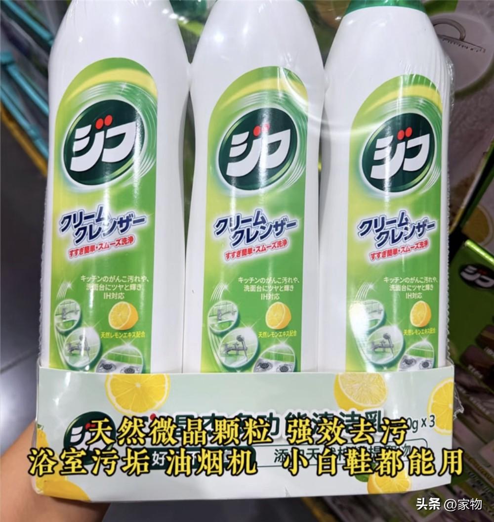 它有點類似於牙膏的清潔原理,內含微晶顆粒,可以高效清除掉竈臺、油煙機的重油污,或者是衛生間的黴漬水垢,親測就連刷鞋子也可以放一點,真的是萬用了。