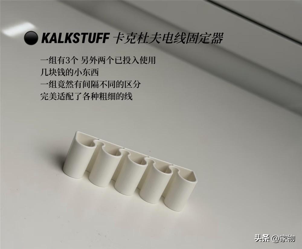 最後就是這個線材固定器啦,我買它主要是用來理清我家餐邊櫃和書桌後面各種紛亂線材的,可以直接貼在桌子底部或者牆上,讓線材變得順貼,看上去也會顯得整潔不少,同樣只要幾塊錢,真的很值。