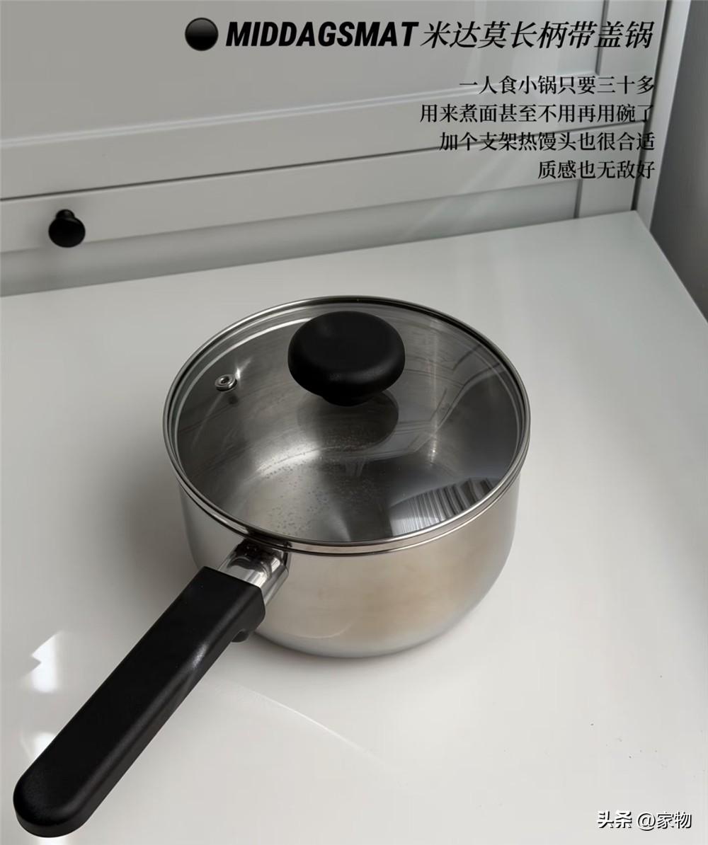一個我家的小奶鍋,煮泡麪、熱牛奶、加熱剩飯菜都用得上,手柄是隔熱防燙的塑料材質,鍋身則是食品級不鏽鋼,且自帶一個小蓋子,更方便迅速加熱。