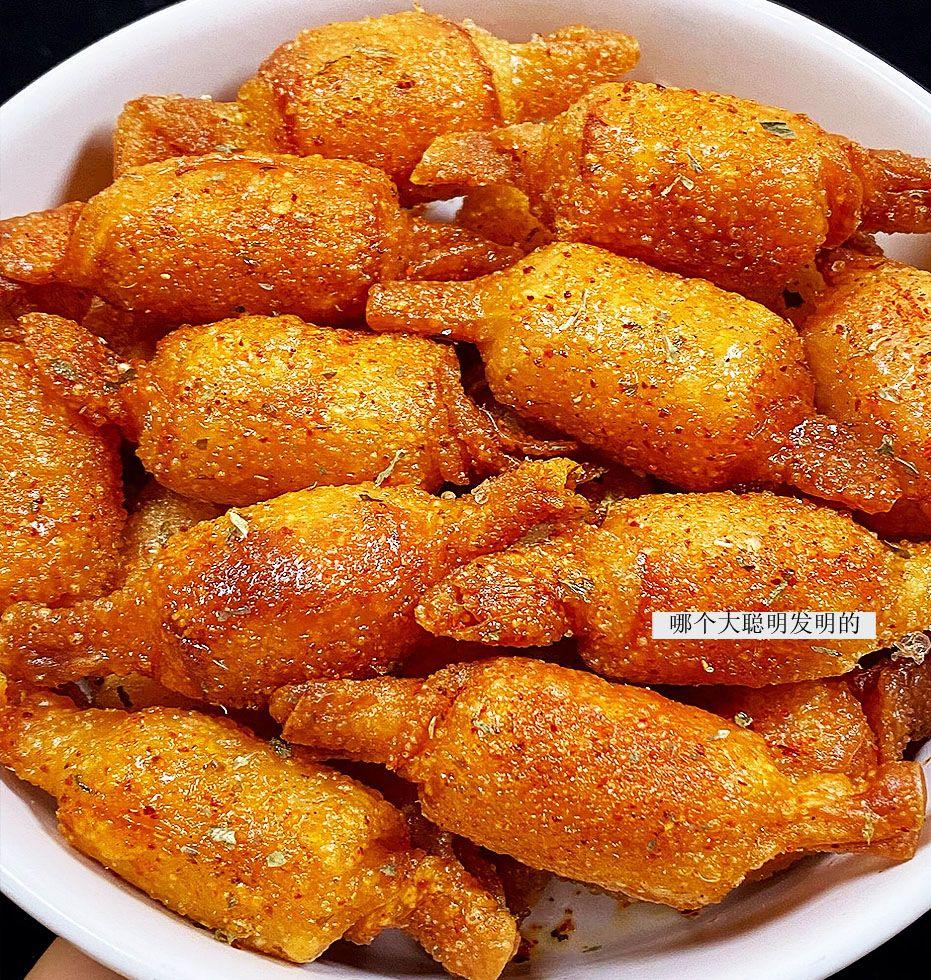 餃子皮炸過後特別香,有點像餛飩皮的口感,但更薄更脆。可以蘸點酸甜醬或者辣椒麪,味道會更上一層樓!