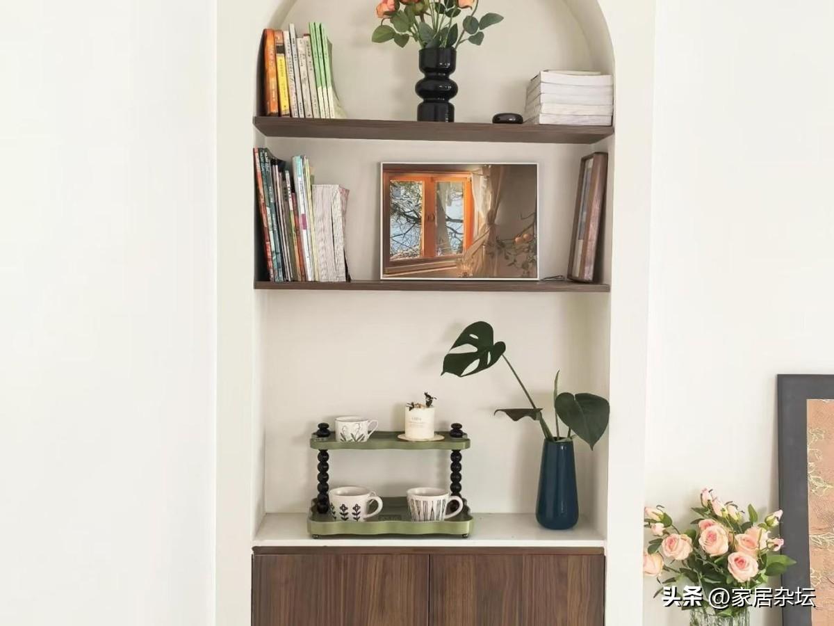可是,現階段的裝修,壁龕用的又越來越多了。現在壁龕往往是利用牆體厚度或者是管井的側面空間,裏面還嵌上了燈光設計,具有了展示性和收納功能。