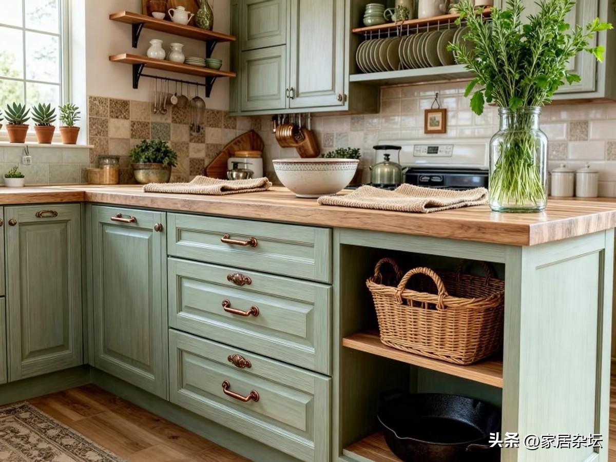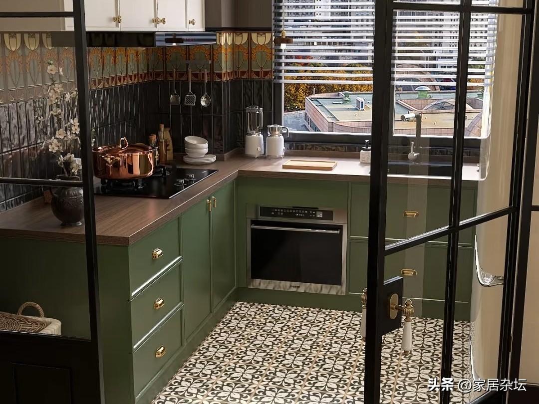 復古綠對房間的採光要求很高,如果廚房採光不好,要慎用復古綠,特別是深綠色。