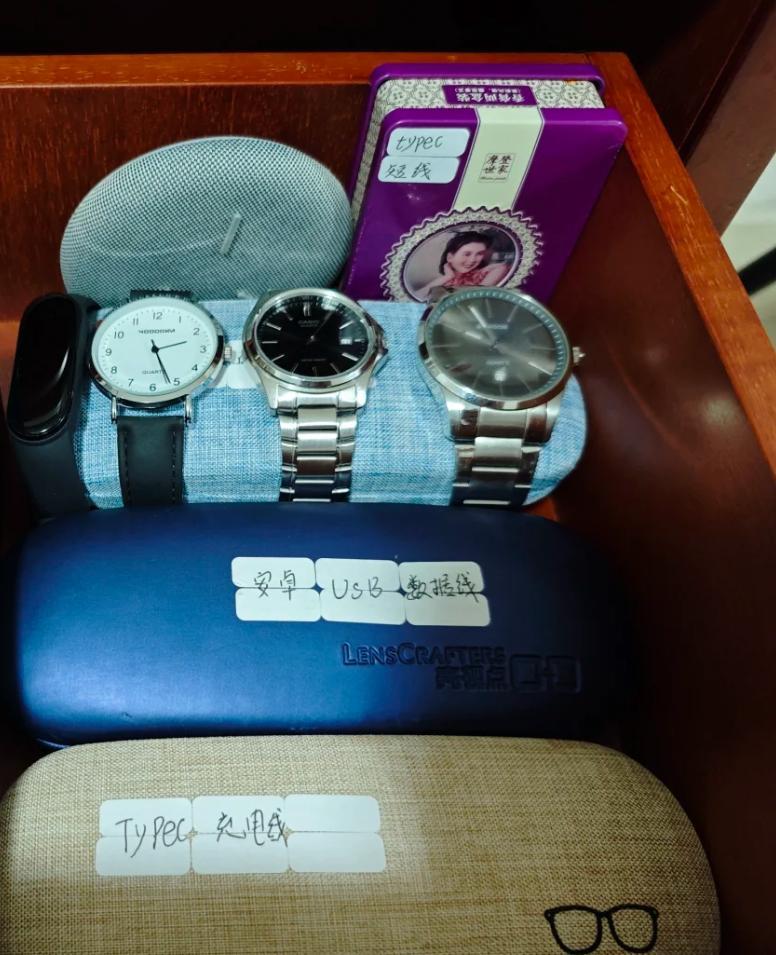 除此之外,家裏囤下來的一些數據線,暫時不用的耳機等等,也都可以直接塞進眼鏡盒裏收納起來。