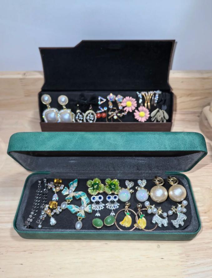 比如耳環、戒指、手鍊等等一些珠寶飾品,完全可以直接放進眼鏡盒裏。因爲眼鏡盒內部都是磨砂面,柔軟,收納這些東西再合適不過了!