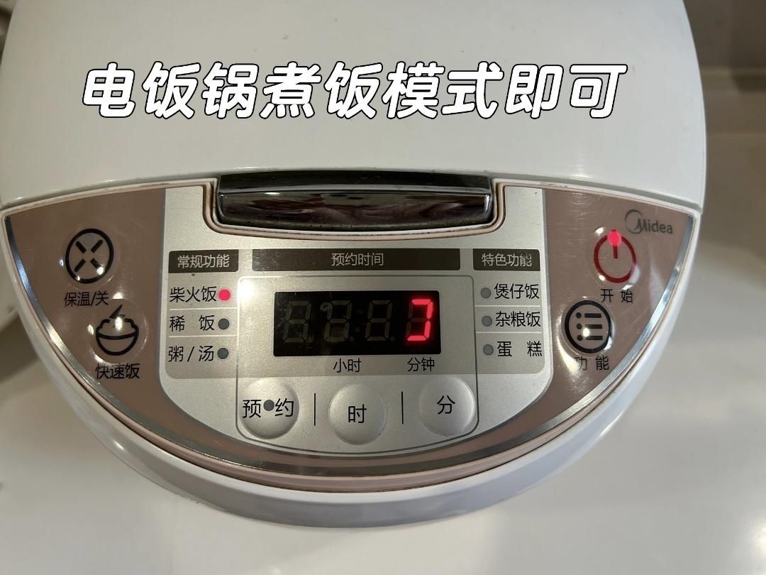 然後開啓電飯鍋煮飯模式即可,煮好了浸泡半小時,就可以先過嘴癮了。