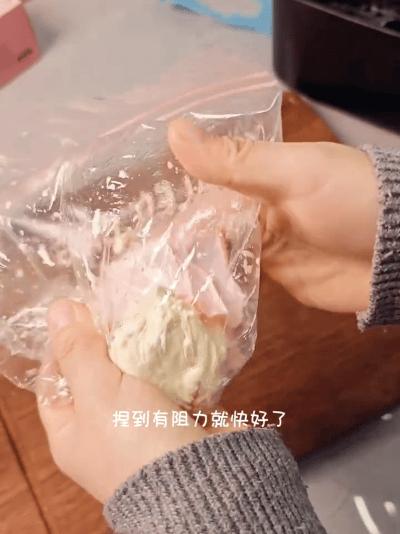 ③把烤好的棉花糖丟進黃油袋子裏,用錫紙或者油紙也行,核心是可塑性+耐高溫容器,再加三勺奶粉、一些堅果和餅乾,然後隔着袋子盡情揉捏,直到它們均勻地融爲一體;