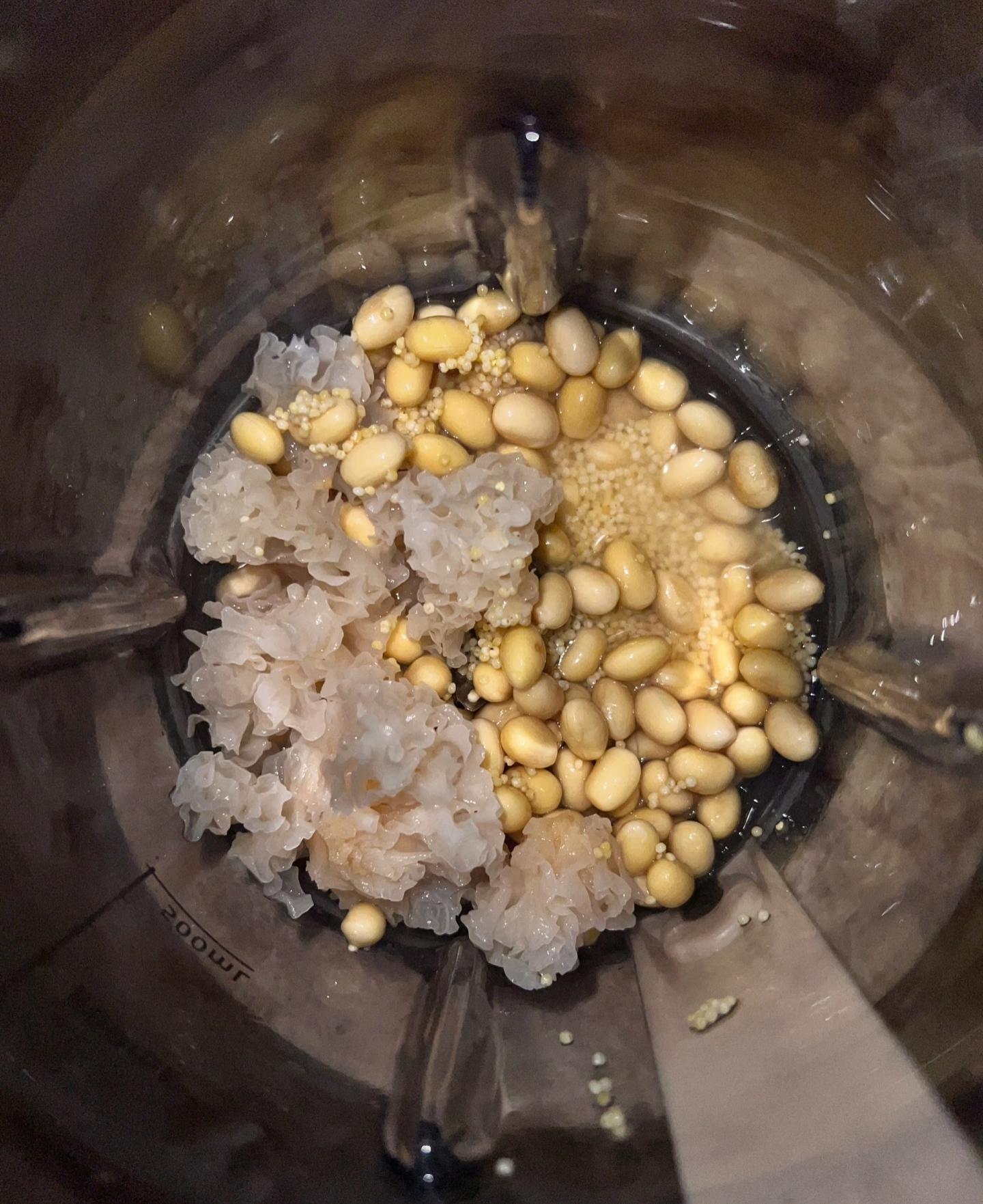 也只需要把銀耳泡發,和黃豆一起日的一聲打成糊糊,就完事了。