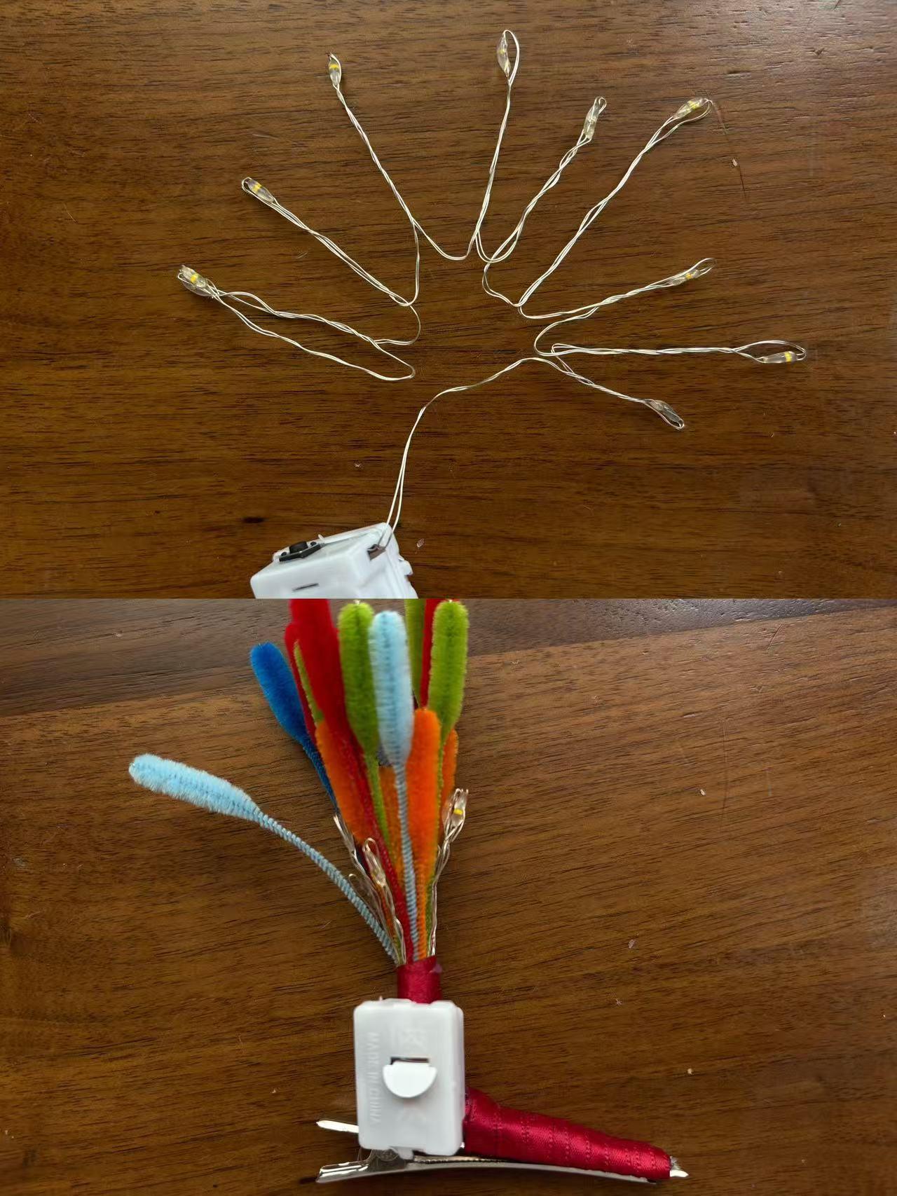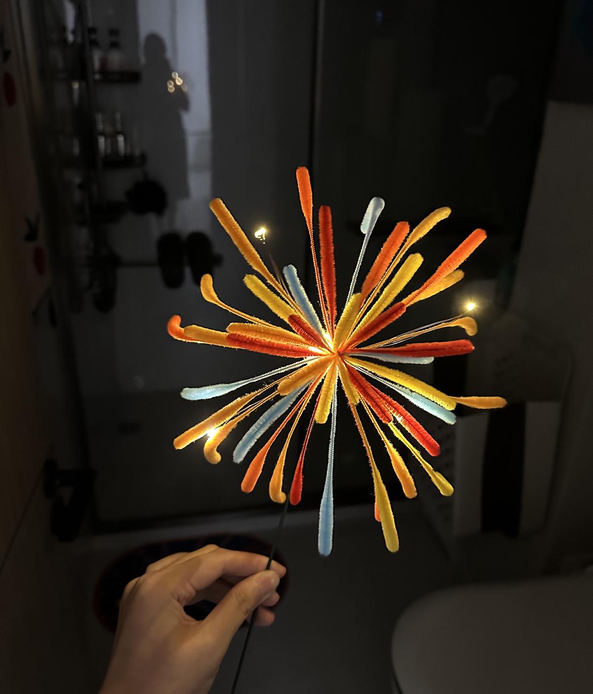 最近在網上還刷到了年輕人用扭扭棒煙花的思路:煙花髮夾。
