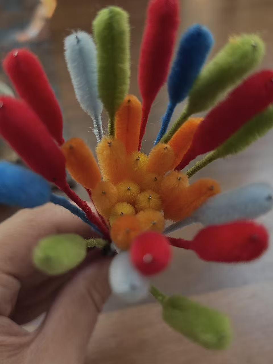 最後配上五彩斑斕的煙花菊花、綠色小草點綴,彷彿真的煙花在手中綻放了。
