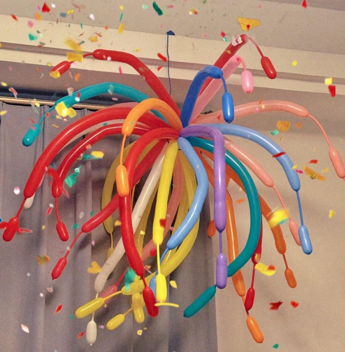 這樣就做出一個又大又飽滿的煙花氣球了,可以把它用粘鉤吊在屋頂或牆面,氛圍感直接拉滿。