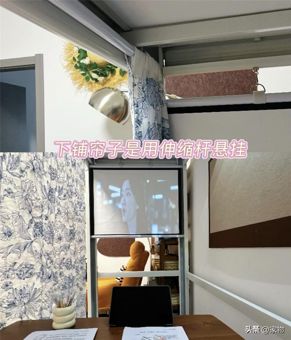 爲了避免影響投影效果,上鋪下沿的位置甚至做了兩道拉簾,可謂是面面俱到。