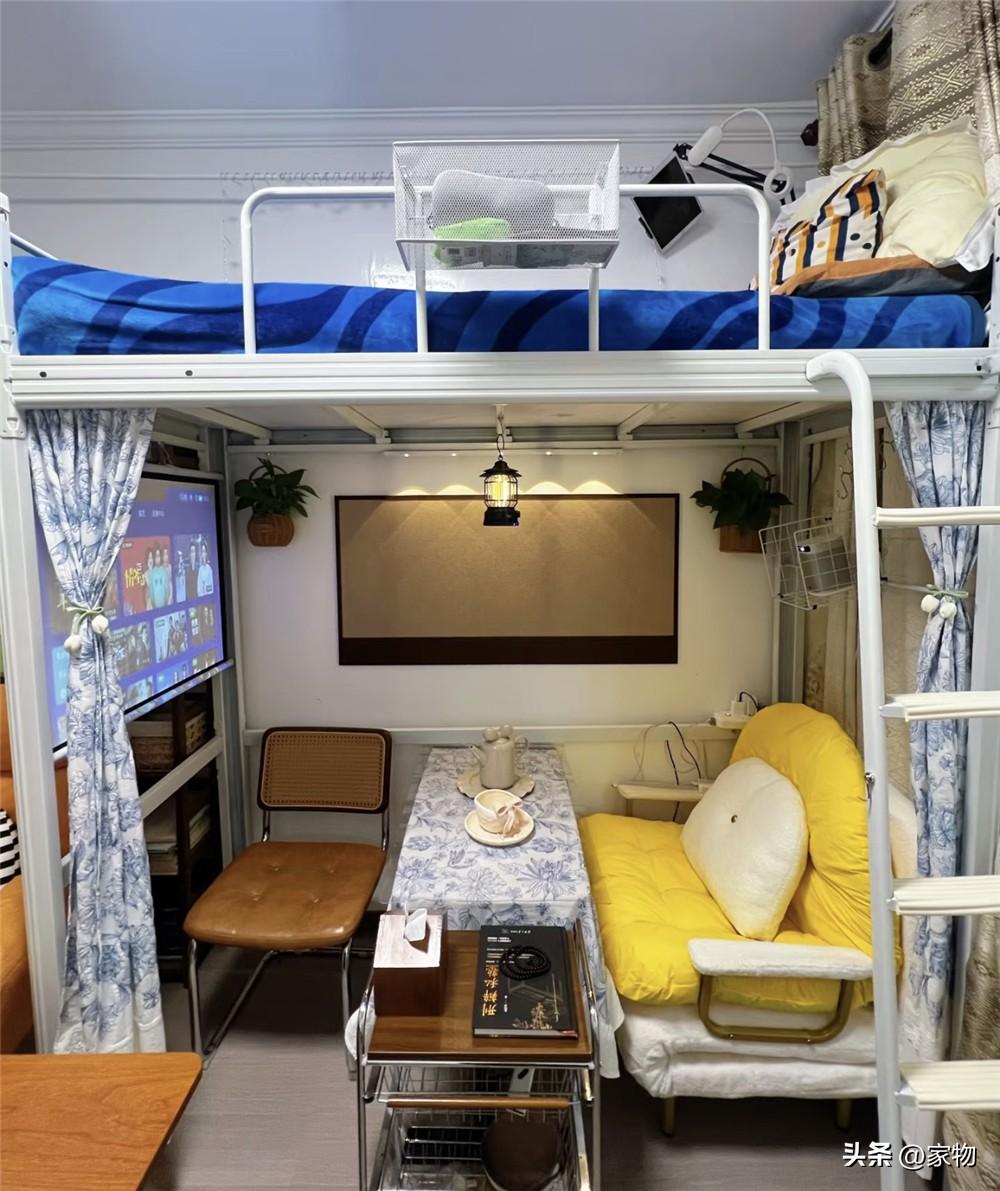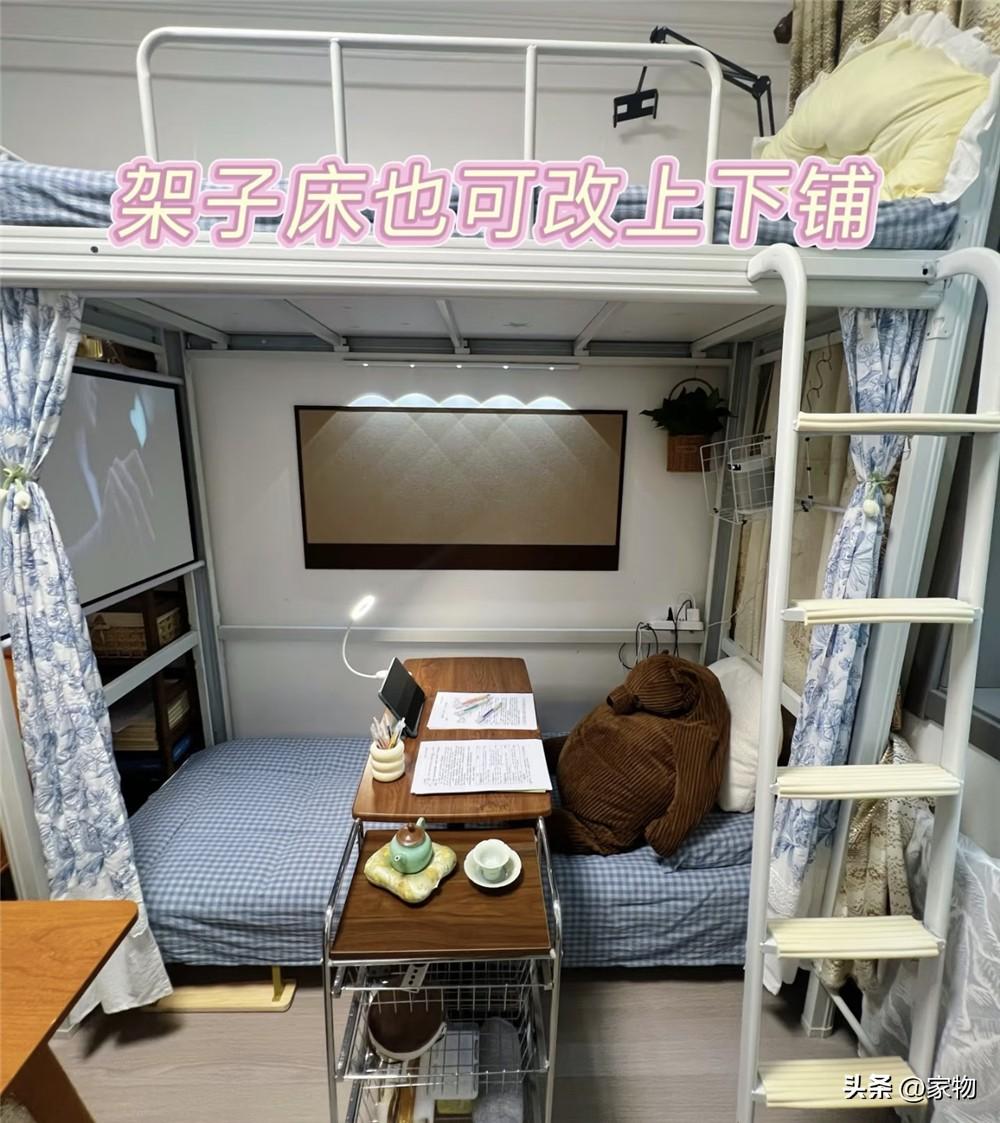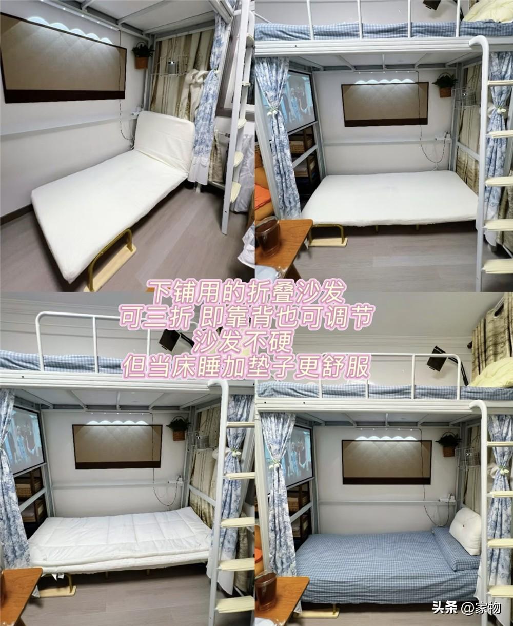 雖說是上下鋪,但因爲是定做的,且增加了寬度,睡起來其實還挺舒服的,起碼要比很多學生宿舍舒服。
