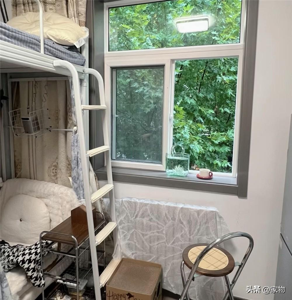 她將原本的小牀換掉,用上鋪牀架切分出上下鋪,將縱向空間充分利用起來。