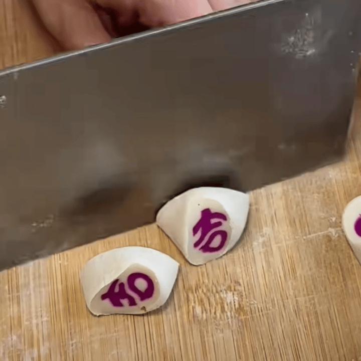 最後合體,用一張大面皮整個捲起來,搓成長條,切成的劑子就是“吉”字啦。