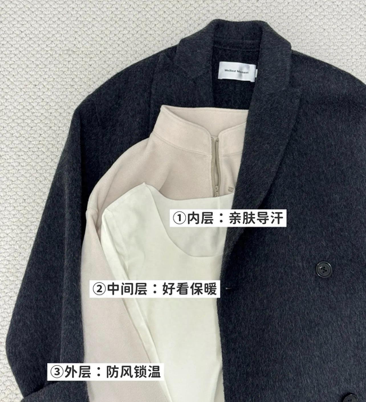 既然是三明治,那穿衣邏輯也是三層,各司其職,內層負責親膚導汗,中間層負責好看保暖,外層負責防風鎖溫。