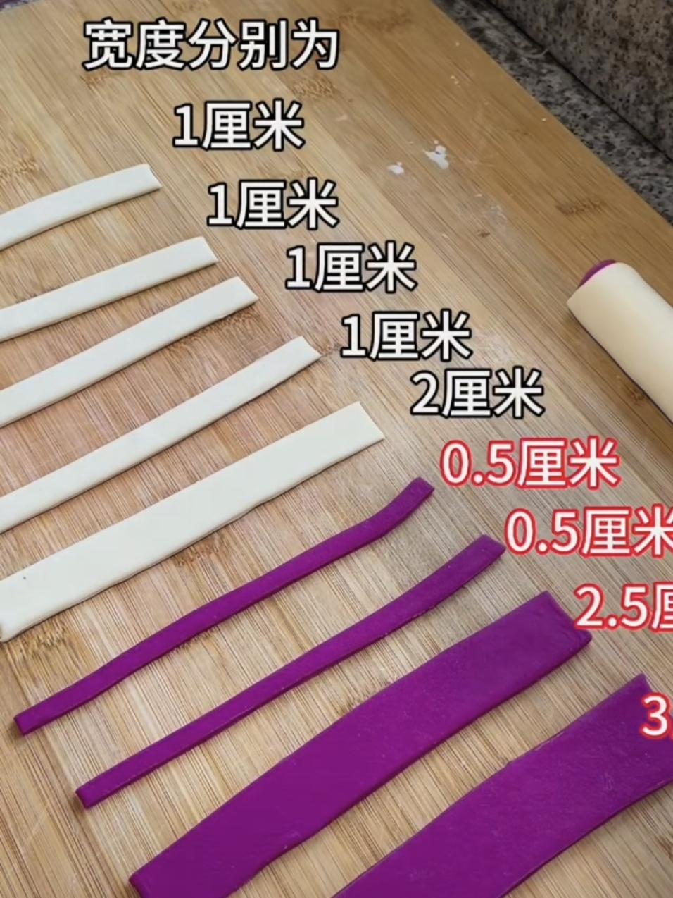再把剩下的面片,切成如圖不同寬度的條;