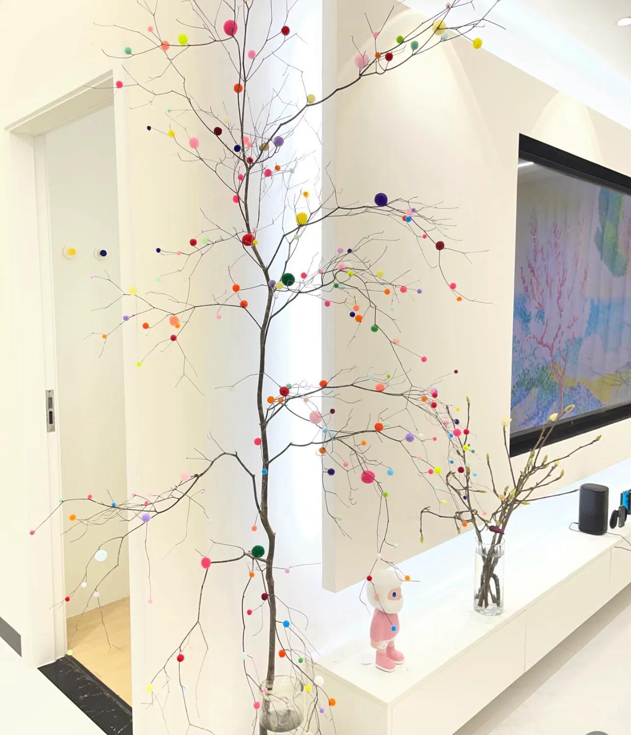 更有意境的,可以整點好看的干支,再加點毛球或者彩泥搓成球,用熱熔膠固定一下,立刻就有了“枯木逢春”的feel。