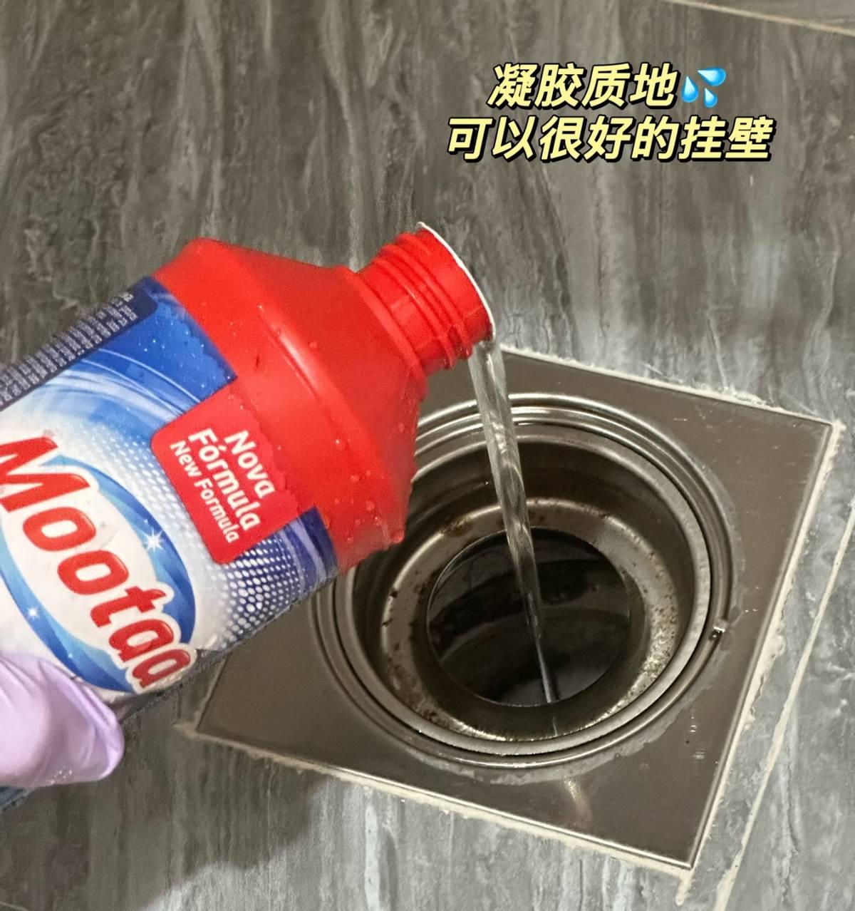 它是凝膠狀的,能附着在管道壁上慢慢溶解堵塞物,對頭髮、油垢特別有效。
