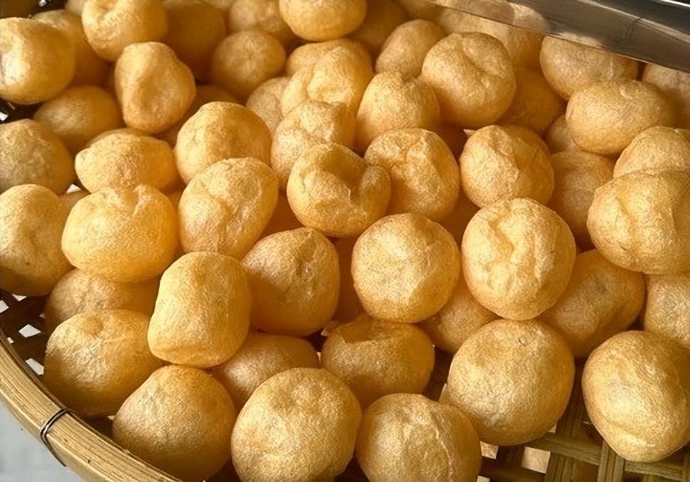 它是用鯪魚肉糜做成,外表炸成金黃色的圓球,像一顆顆小豆泡。