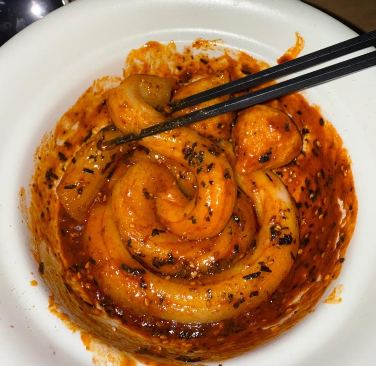 煮好後,口感太奇妙了,滑溜溜、脆生生的,帶着魔芋本身的爽脆。