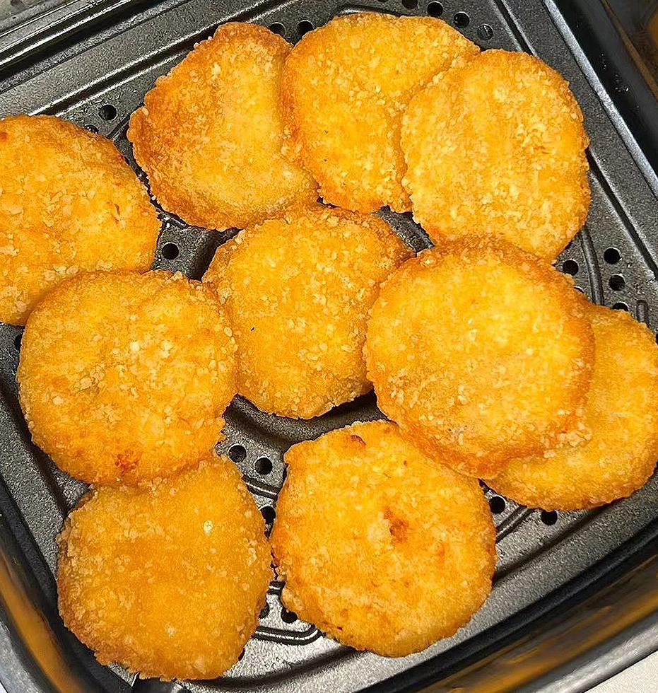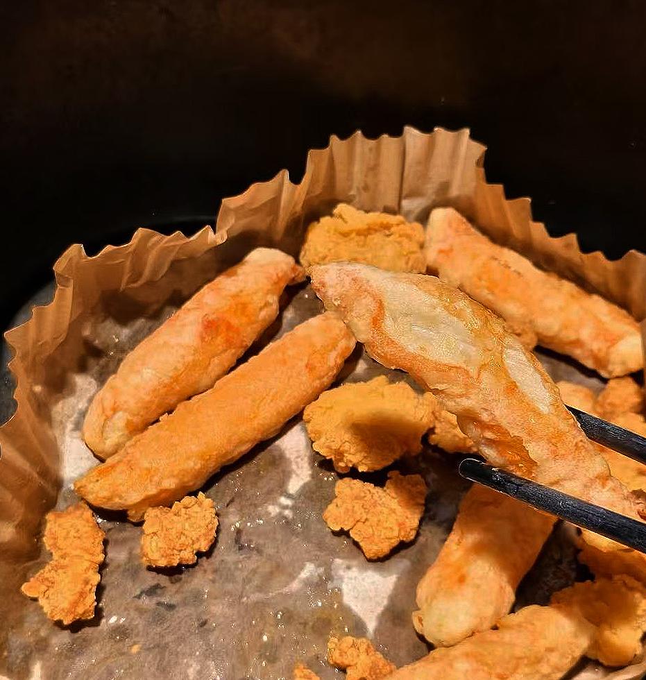於是,乾脆直接在拼夕夕給她買了半成品,空氣炸鍋180度10分鐘,然後翻面再10分鐘,就可以能做出拉埃蓬鬆酥脆、不幹不柴,接近炸的口感。