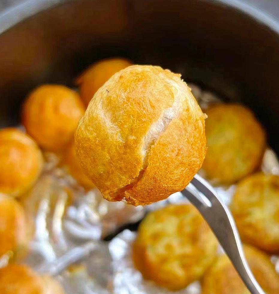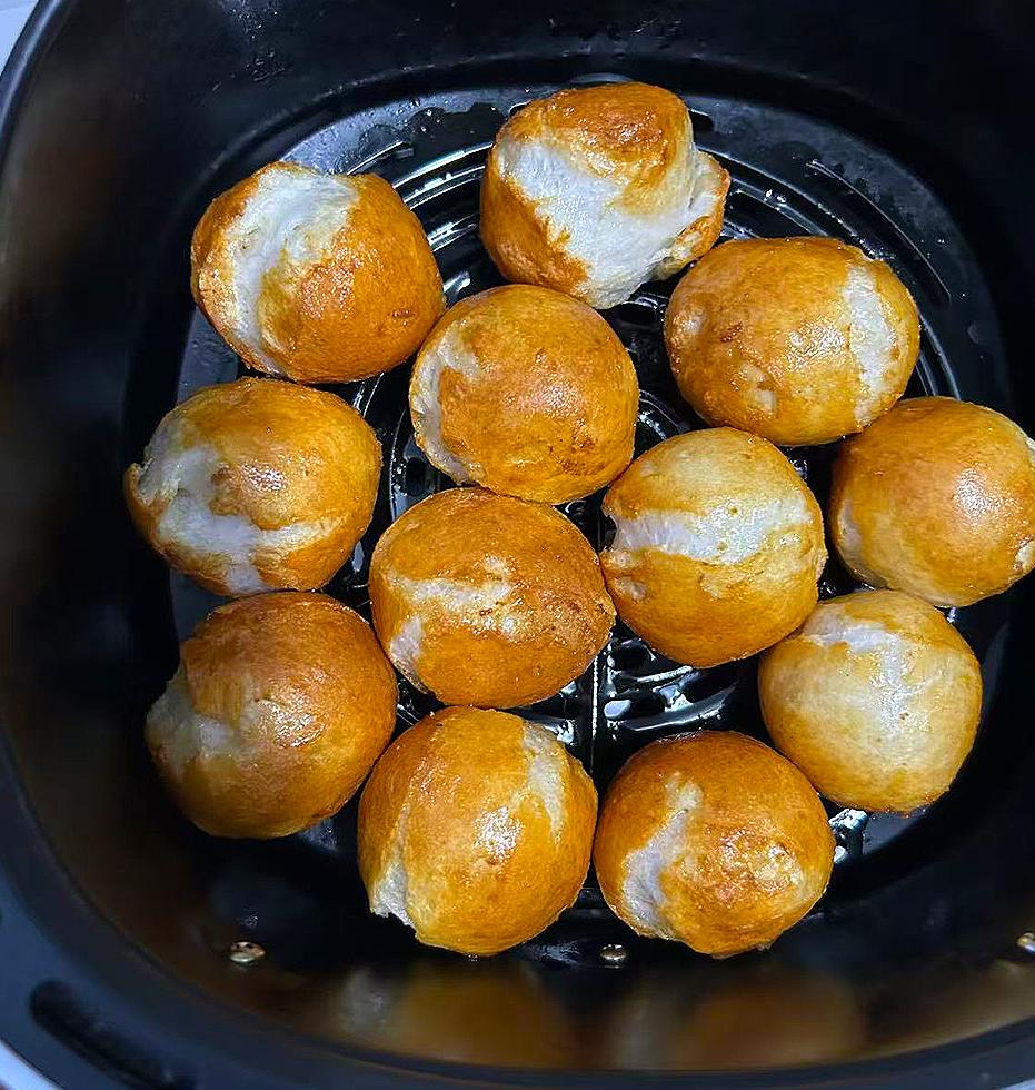空氣炸鍋180度8分鐘,就會得到一個炸完表皮會微微開裂那種丸子,無論是視覺還是味道都老饞人了。
