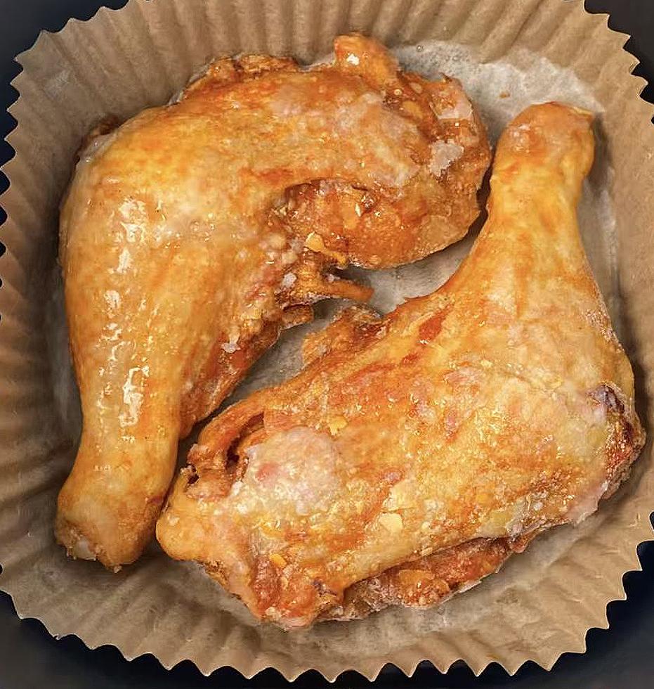 空氣炸鍋200度12分鐘,外皮可以烤得焦香酥脆,裏面的雞肉卻依然鮮嫩多汁,尤其是奧爾良風味醃製得很好喫。