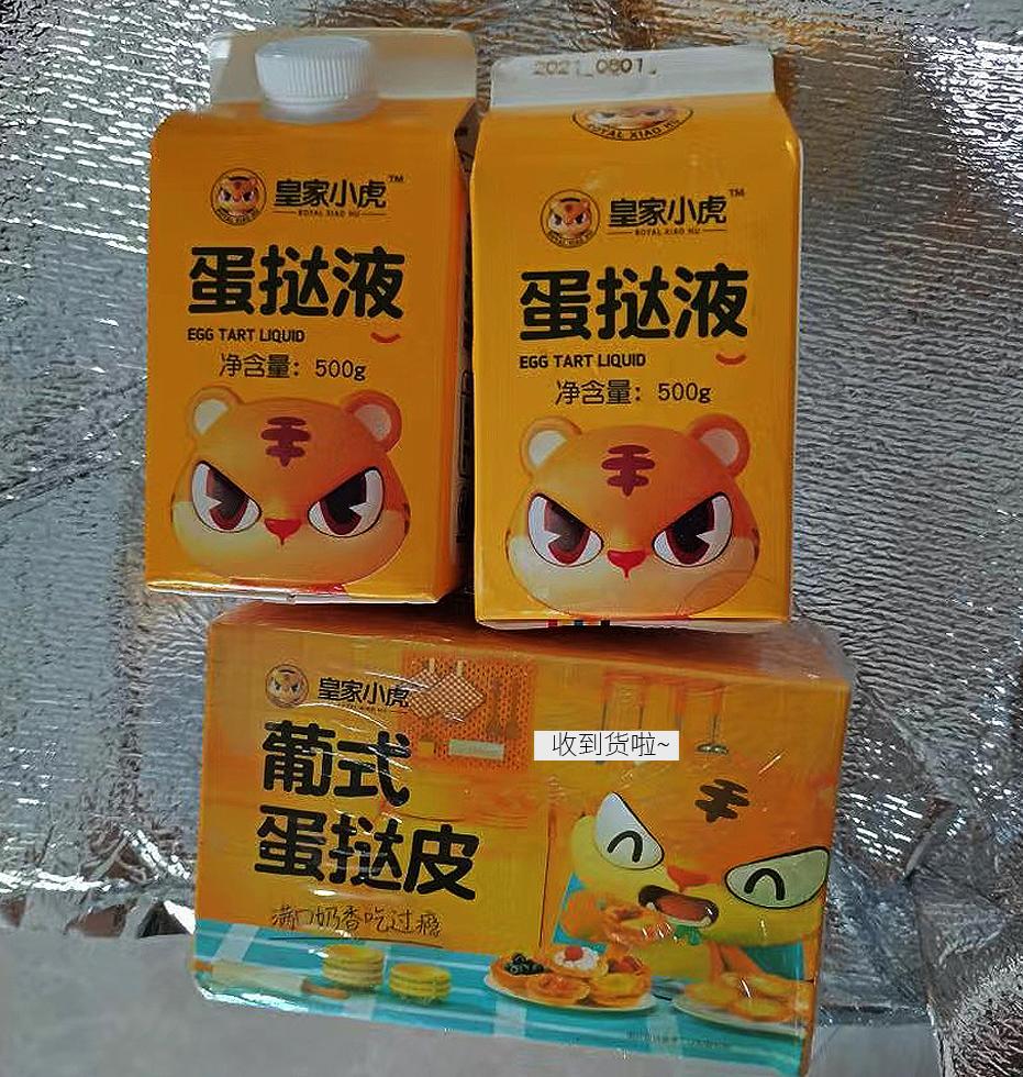 收到貨是套裝的形式,蛋撻液和蛋撻皮是分開包裝的[帶錫紙]。