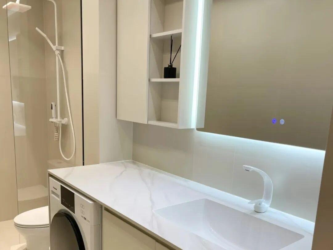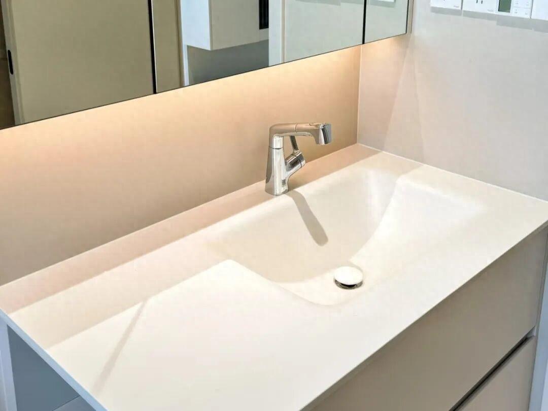一體臺盆儘量選擇優質人造石或者是陶瓷材質,抗污性更強。再搭配上可抽拉龍頭,清潔臺盆,沒有任何衛生死。