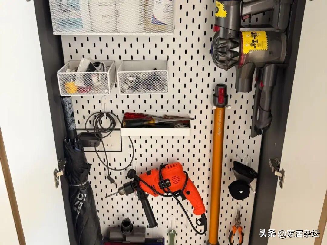 家政櫃內部,儘量配置洞洞板或者是掛鉤,可以最大化的利用內部的空間。