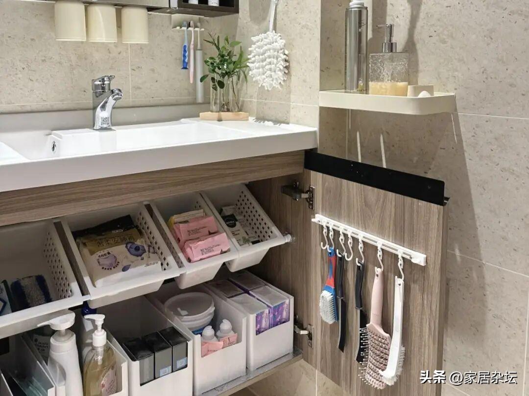 做法是多種多樣,可以在櫥櫃或者是浴室櫃門的內側,安裝收納架,掛鉤或者是收納袋。