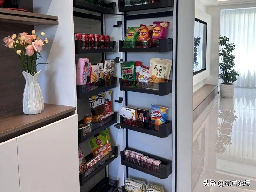 裏面如果預留有插座,掃地機器人就可以自動充電,是非常方便的。而且櫃門關上以後,裏面的雜亂也看不見,也顯得很整齊。