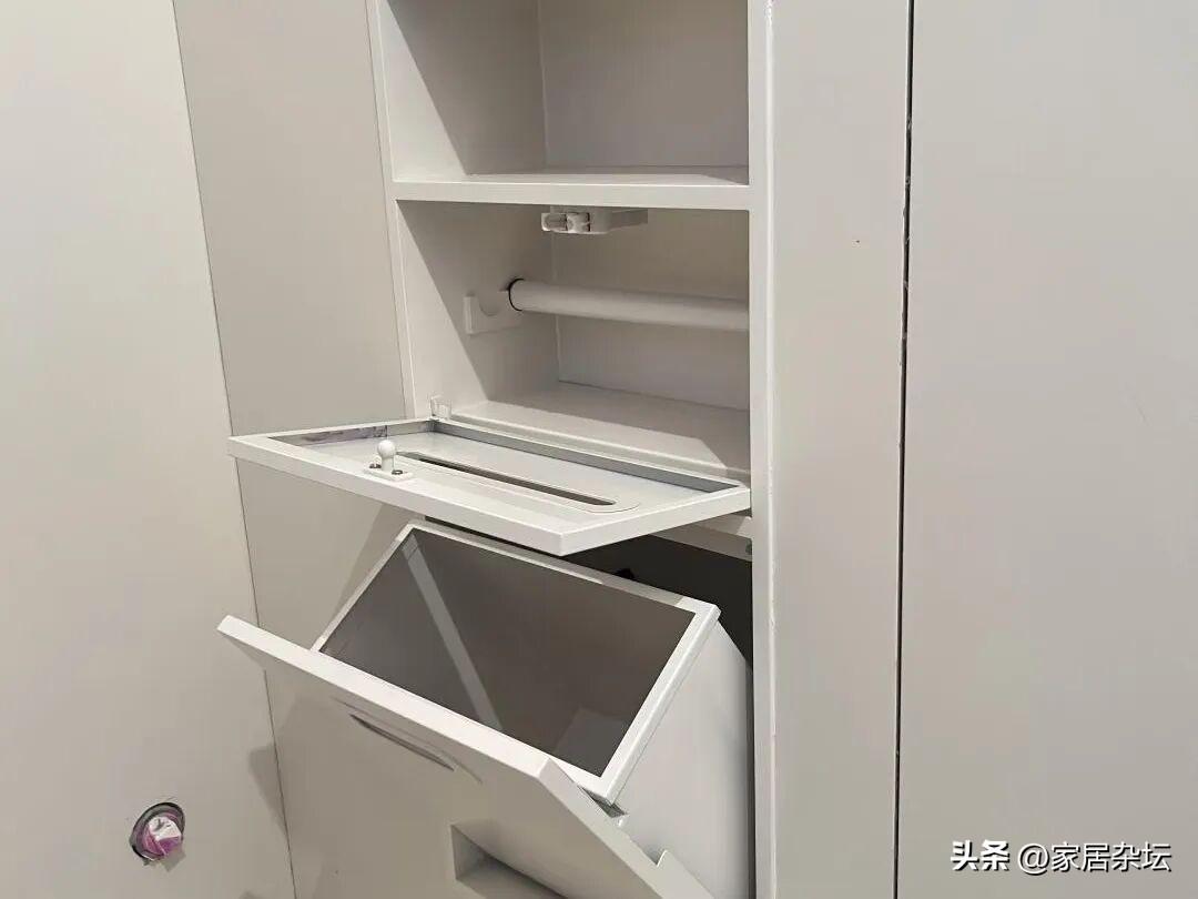 這種隱藏式垃圾桶不僅用於廚房,像衛生間同樣也可以做隱藏式垃圾桶,減少該區域的衛生死角。