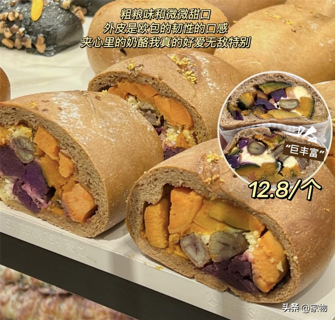 這外皮是粗糧的歐包,單喫就很好喫了,更別說內裏夾了紫薯、紅薯、栗子等一系列甜味類的糧食,既香甜可口吃起來還不傷身體,幾乎每次去我都會買一個,也算是它家現在賣得極快的零食,不,這玩意已經可以當正餐主糧了。
