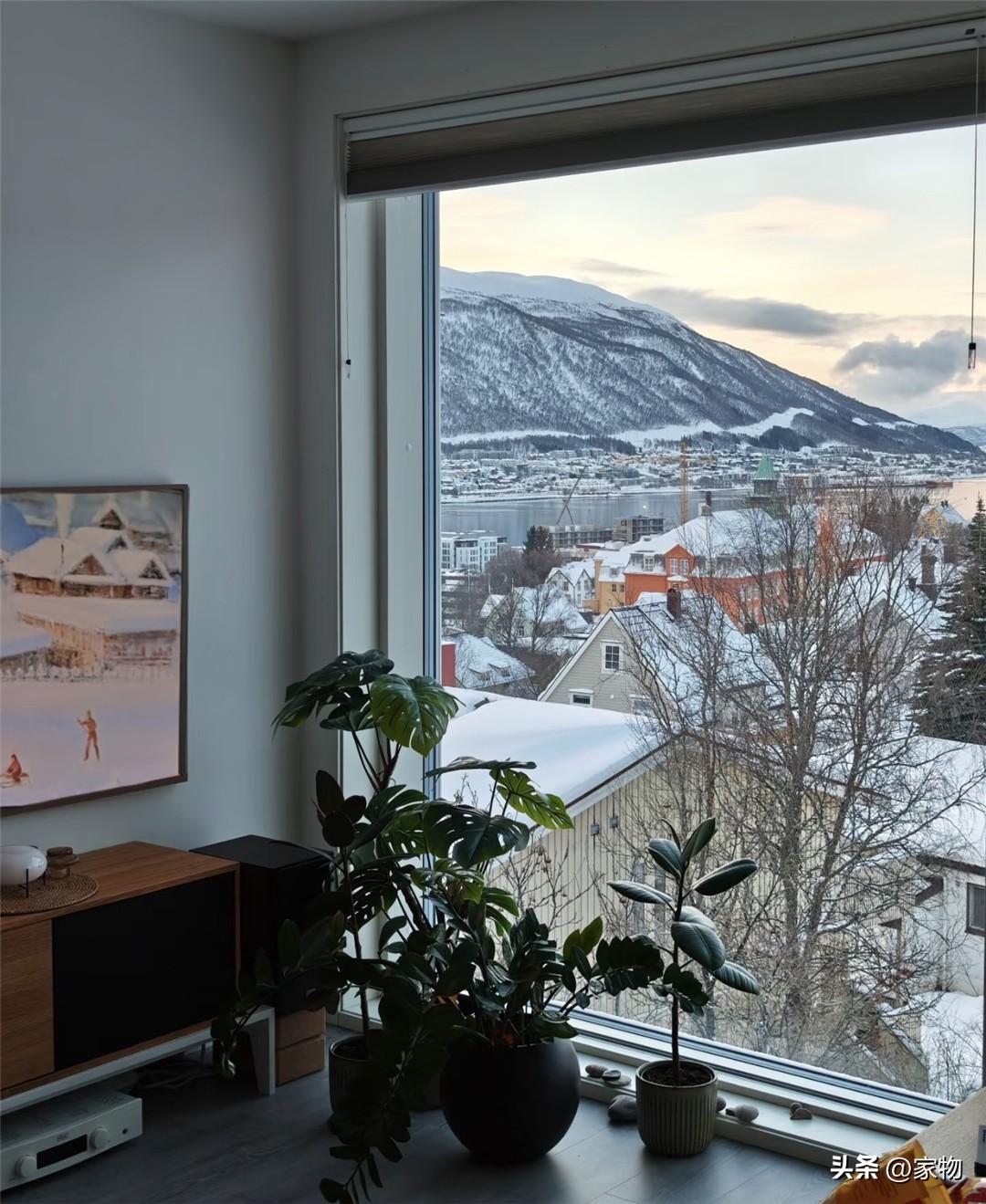 最後就是家裏的電視牆了,或許因爲落地窗外盡是美景,電視牆除了掛電視,沒有任何其他的裝飾,反而這種留白和窗外的美景相互搭配,呈現出一種簡單自然的美感,我個人還是挺喜歡這種簡而不廉的裝飾噠。