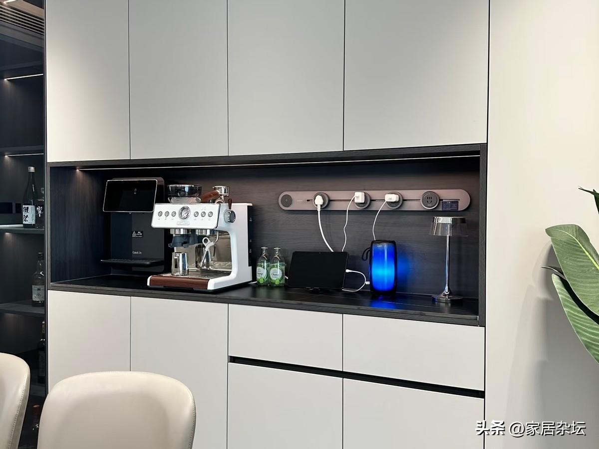 軌道式插座的現代感也很強,有很高的顏值。像廚房、書房、電視牆等電器密集區,都非常適合。