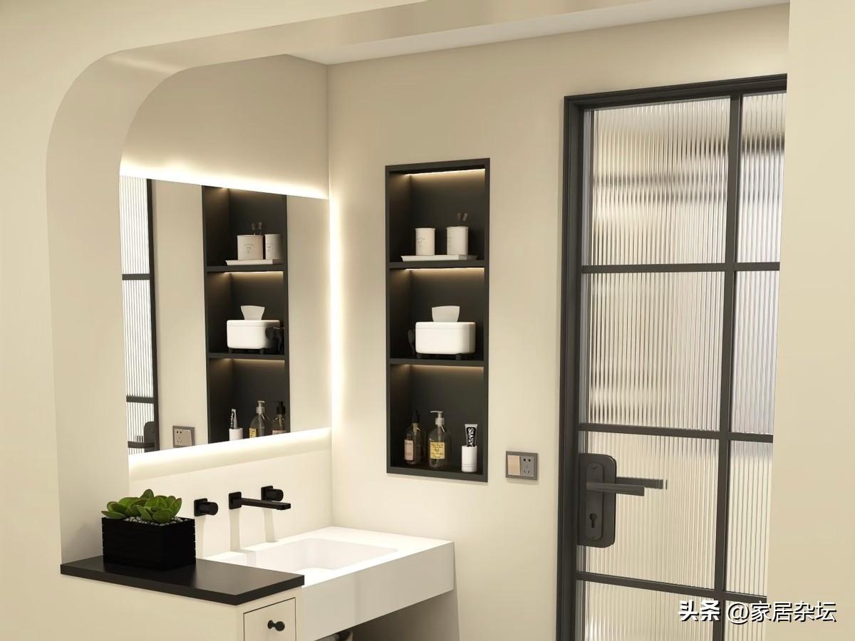 壁龕,一定要在非承重牆上施工,承重牆開鑿是不允許的,會有安全隱患。在施工時,要提前規劃好尺寸,避免後期放不下洗浴用品。