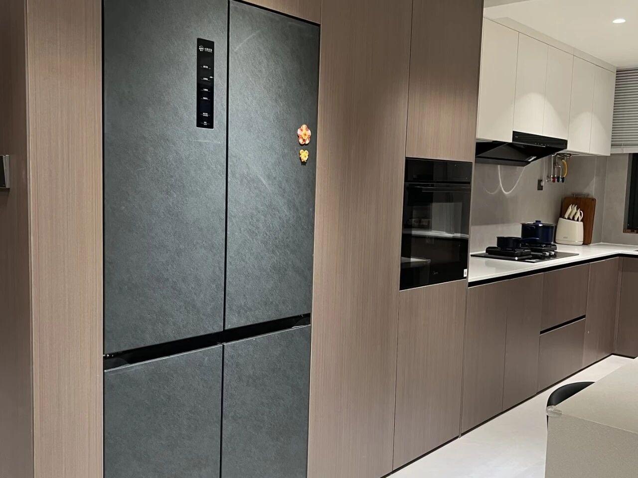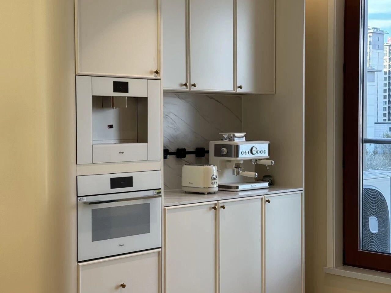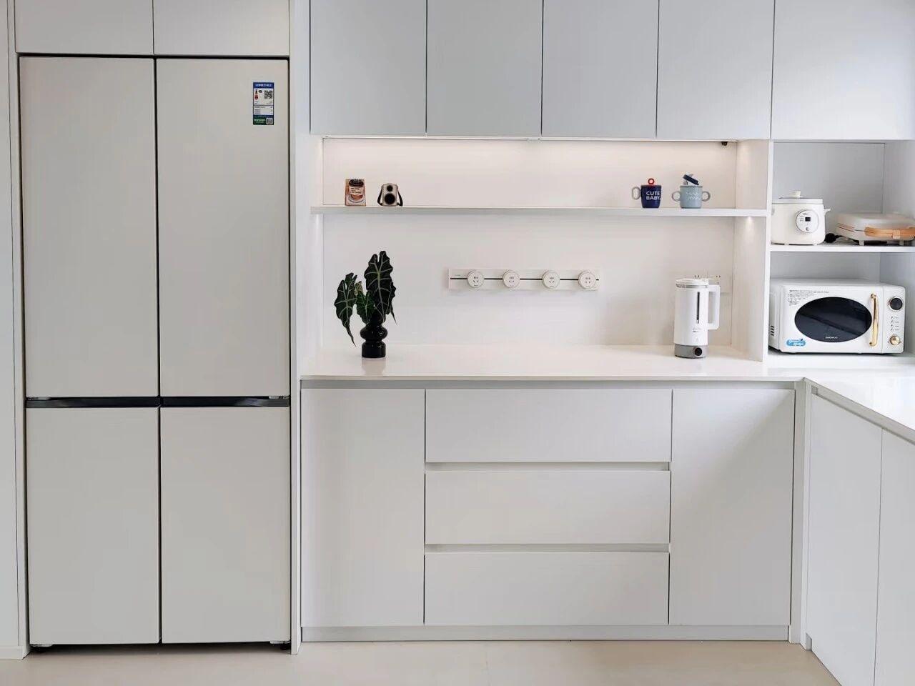 在完工以後,家裏的櫃門可以與家電面板平齊,或者是統一用櫥櫃門板覆蓋實現整體的效果。
