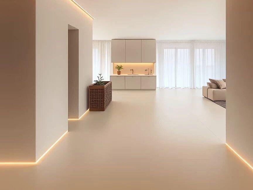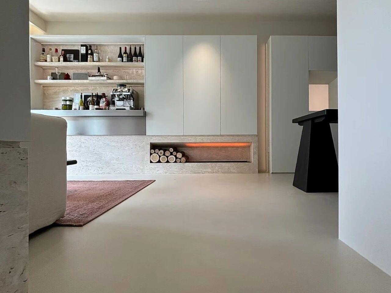 微水泥地面可以實現無縫一體化的裝修效果,視覺整體性更強,而且具有防滑防水的效果,像廚房衛生間都可以用。