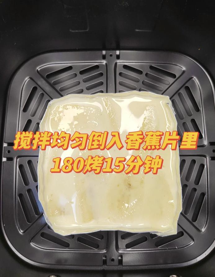 3.倒進裝香蕉的錫紙盒裏,空氣炸鍋設置180℃+15分鐘。