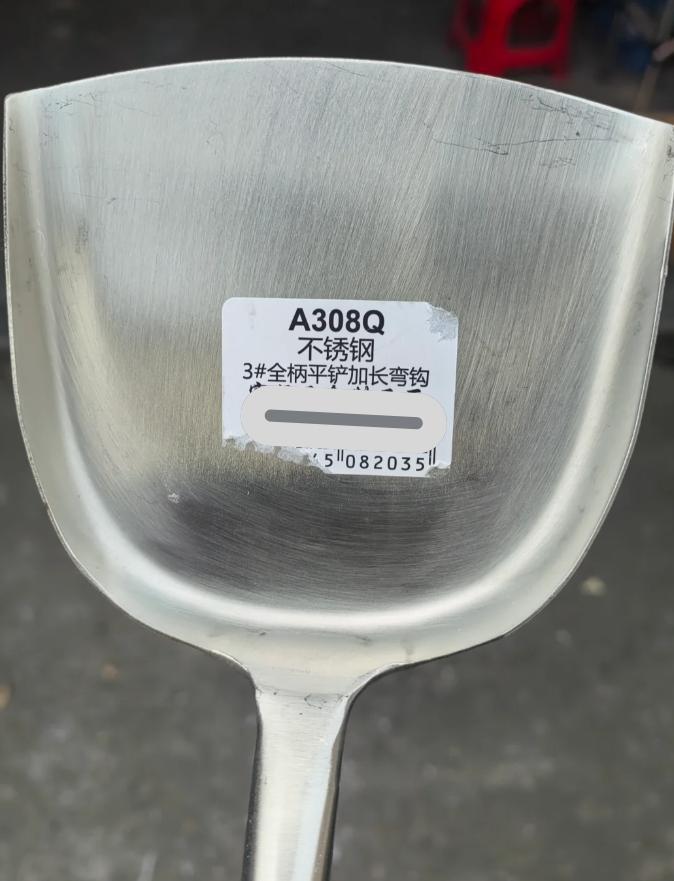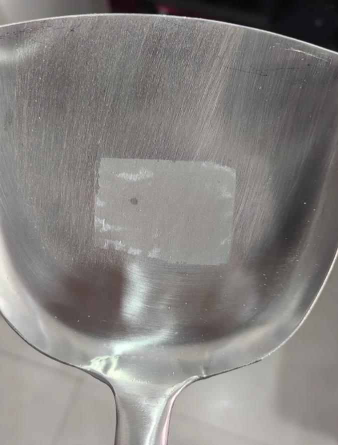 鍋鏟的標籤,貼在把手上也行啊,非得直接貼在炒菜的位置……