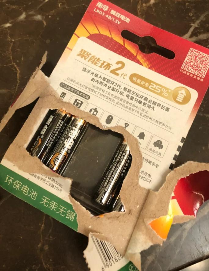 除了牙刷的包裝難撕開之外,還有一種日用品也很難撕開。那就是“電池”!