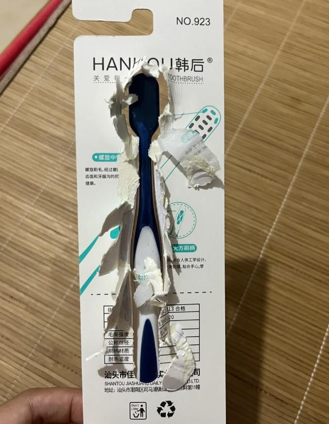 買了個新牙刷,想着拆開用,拆五分鐘纔給拆開,我還是長指甲,要是指甲短的人得撕到什麼時候去……