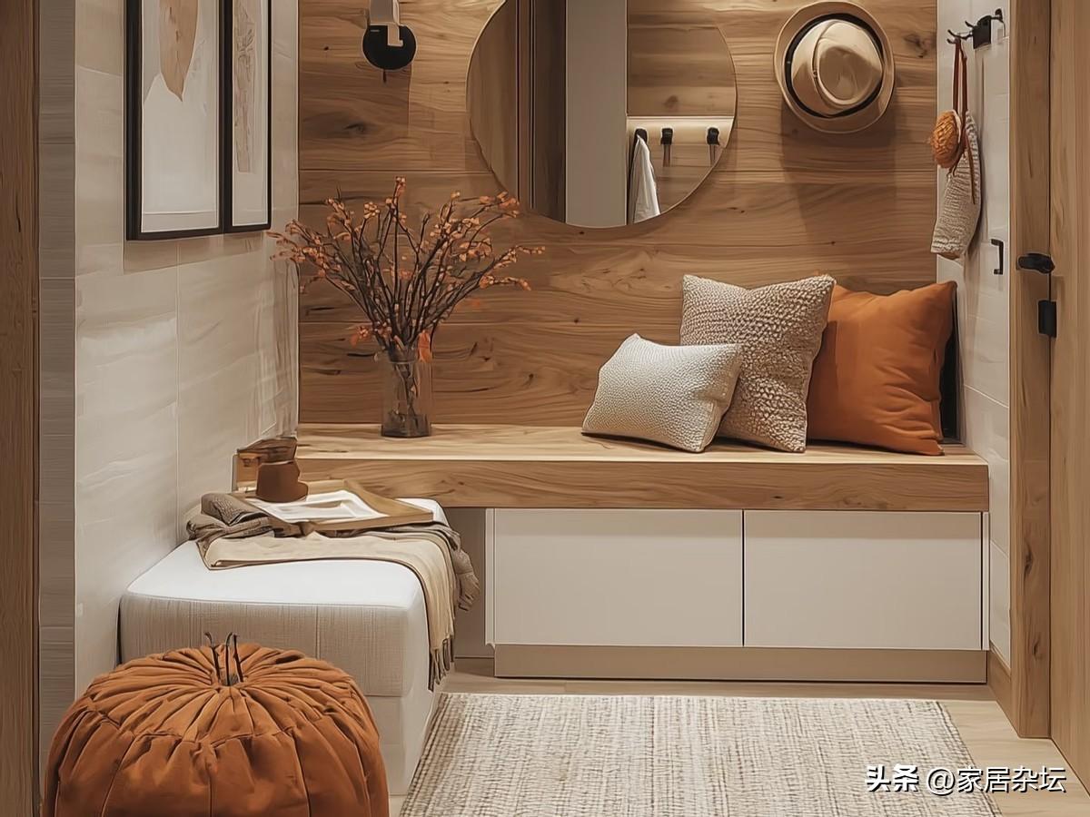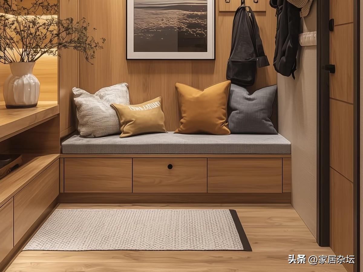 對於玄關,建議大家按照如下的方法裝修。玄關要設置換鞋凳,有常用鞋的存放區,還有臨時的置物臺。