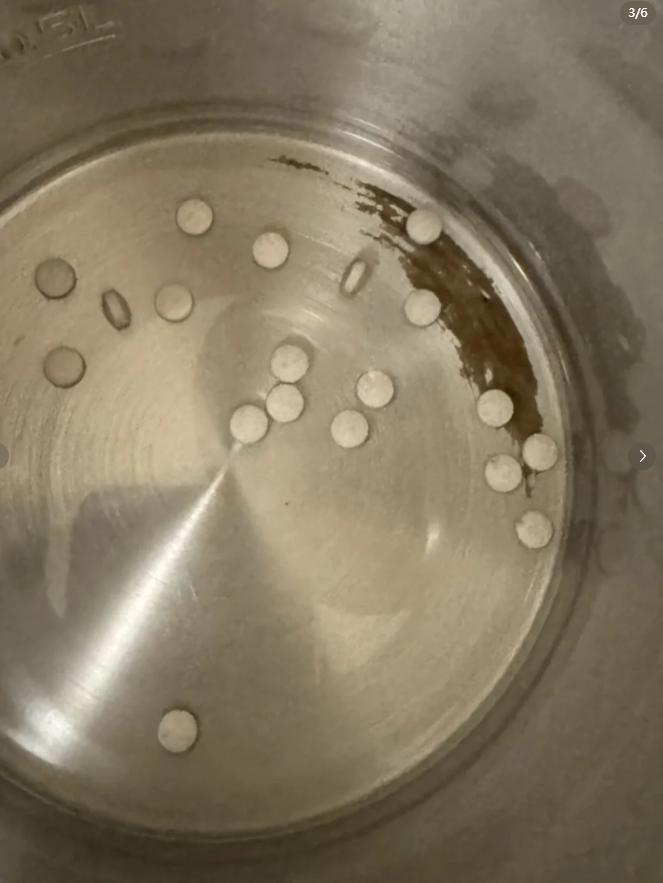 2.靜置1-2個小時後開刷,這個時候就發現水垢已經被溶解到水裏了(維C的本質是碳酸鈣和氫氧化鎂,能和水垢發生反應,把水垢轉化成溶於水的鈣鹽)!
