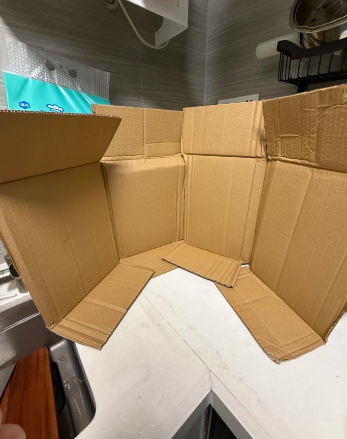 砍雞肉的時候,濺得到處都是,昨晚用箱子做了一個一次性的的“遮擋”神器,以後喫雞就更自由了。