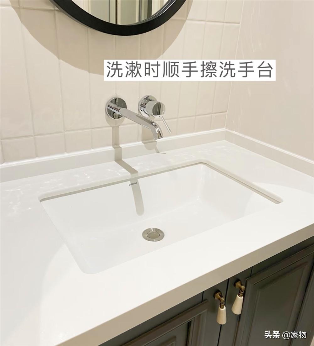 又比如日常洗漱時濺到洗手檯上、水龍頭上的水漬,擦乾淨也就是順手的事兒,就這麼個小習慣,讓家裏的洗手檯周圍總是看着乾乾淨淨,看起來舒服多了。