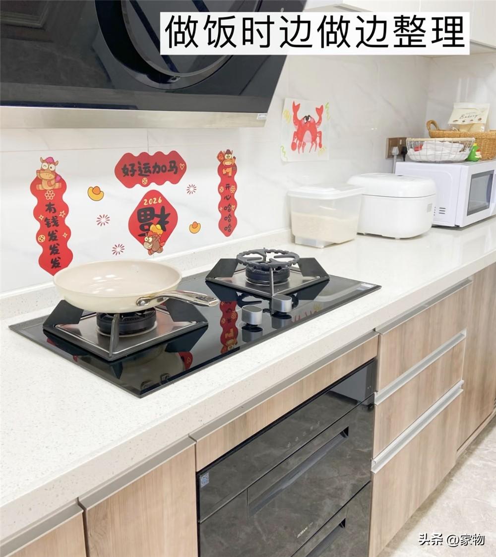 就比如做飯的時候,我會特別注意隨手清潔乾淨竈臺和檯面周圍的油污頑漬,基本上時刻都保持乾淨的狀態,大掃除的時候再清理也變簡單了許多,不會累得氣喘吁吁了。