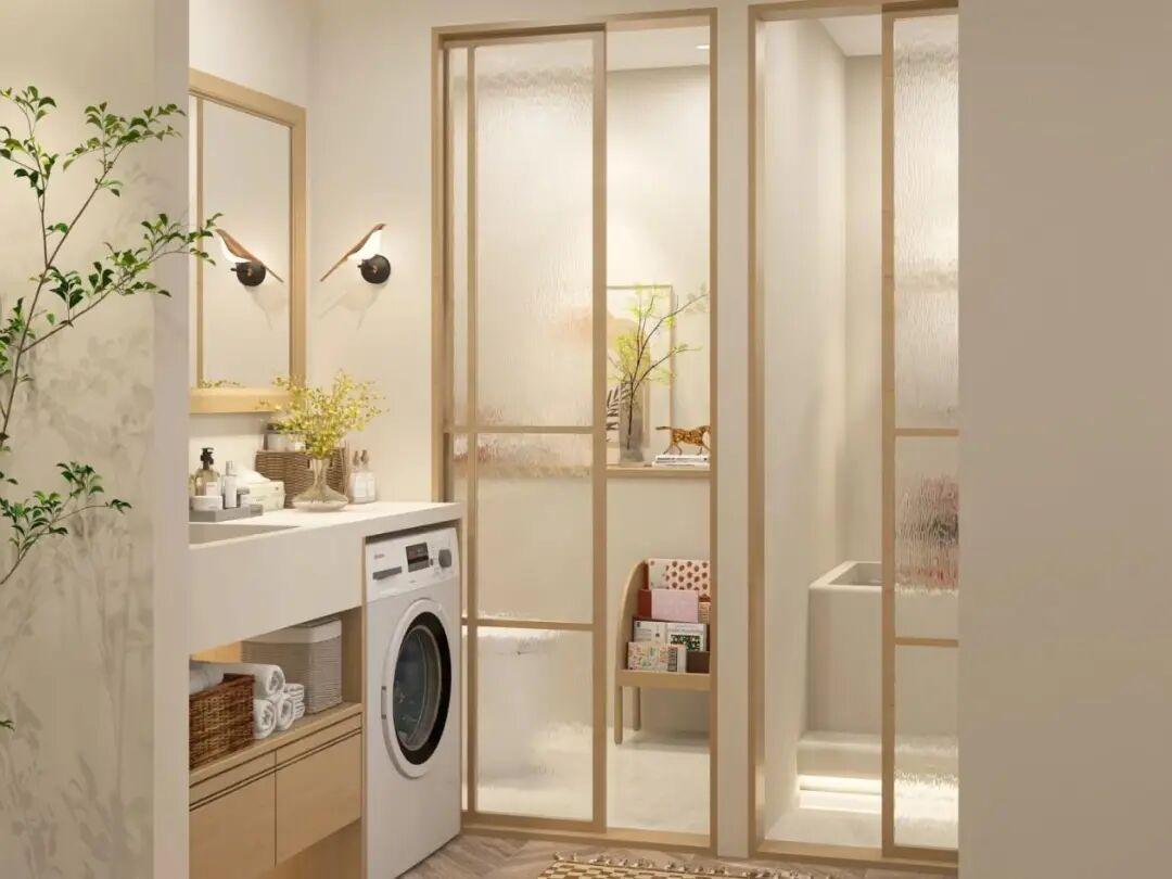 三分離或者是四分離的衛生間,是把衛生間的功能區,例如如廁區,淋浴區,洗漱區和更衣洗衣區用實體隔斷,牆或者門完全分割開。